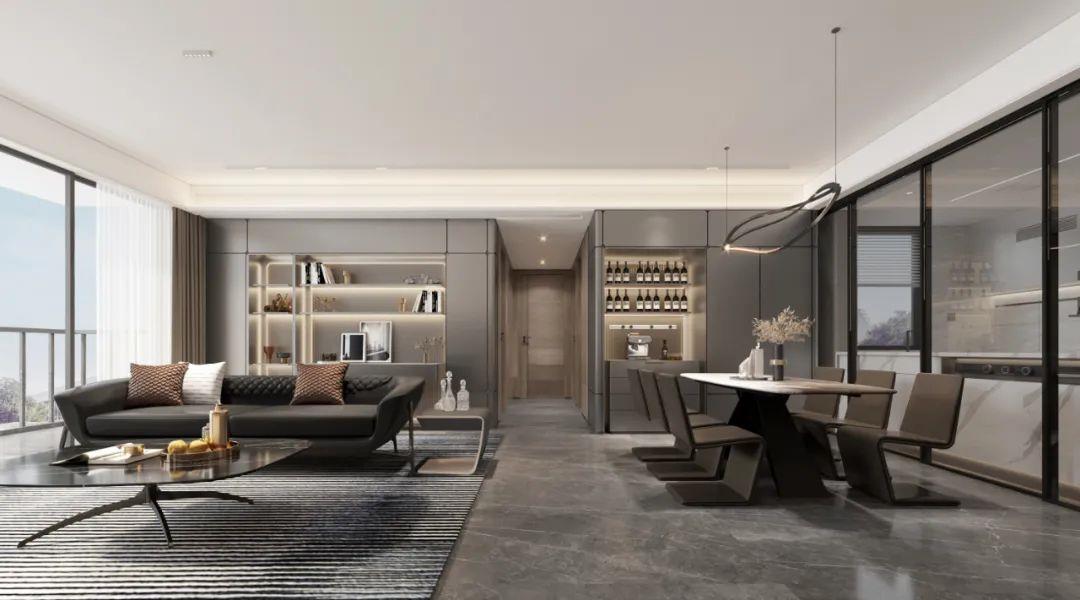 当你是单身贵族或者二人世界,餐厅旁边的房间打开做开放式书房或者与餐厅连为一体做超长工作台,而超宽客厅可以是家庭影院,拉上窗帘,躺着看投屏,氛围感拉满,也可以健身switch模式,或者邀请朋友过来聚会开party,享受社交快乐;